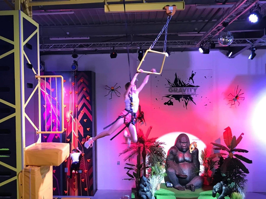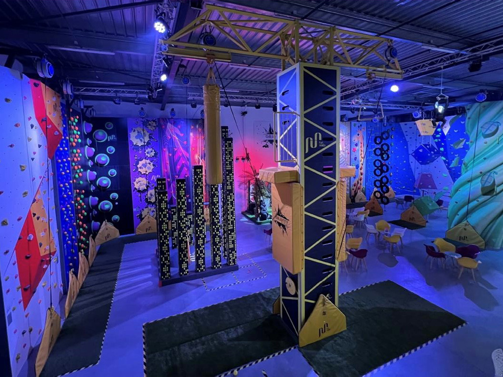 Un parc indoor permettant par tous les temps d’arpenter nos murs en 3D, de grimper au sommet des buildings, ou bien de vous jeter du haut d’une grue de 7 mètres.